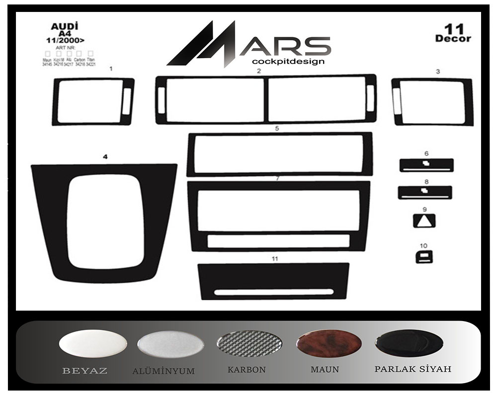 Audi A4 Konsol-Torpido Kaplama 1999-2000 9 Parça