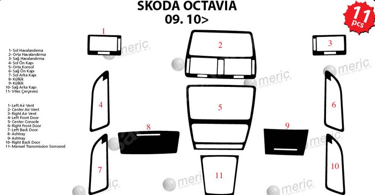 Skoda Octavia Piano Black Coated 2009 1 Pieces