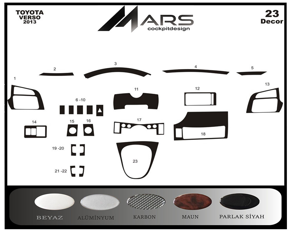 Toyota Verso Console-Mahogany Veneer 2013 23 Pieces