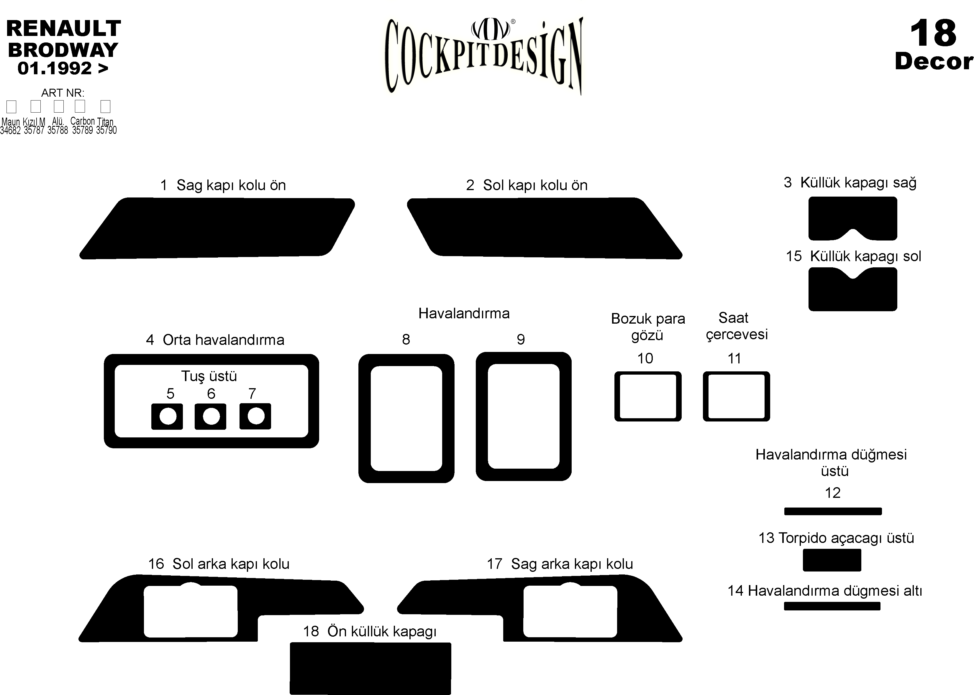 Torpido kaplamaları renk seçenekleri;